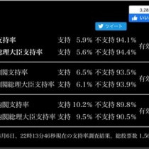テレビの支持率のアンケートは平日の昼間にミヤネ屋などのアベ擁護の番組終了後を狙って家の電話。当然、回答するのは退職組や専業主婦。社会の中心にいる労働者は答えることはない。信用はないに等しい。ネットではただでさえアベの支持などないのに、今回は更に変化が。ネ ...