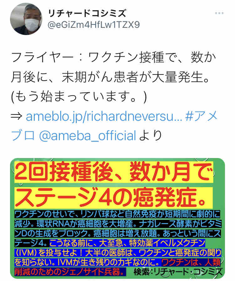 ワクチン、いきなりステージ4の癌が世界中で発生中 October 30, 2021 12:03 カテゴリなしの他の記事 < 前の記事次の記事 > コメント コメントフォーム 名前 コメント 記事の評価 リセット リセット 顔 星 情報を記憶 コメントを投稿する