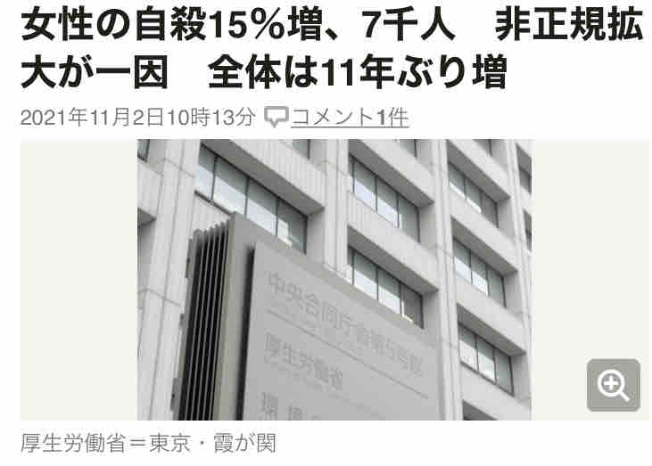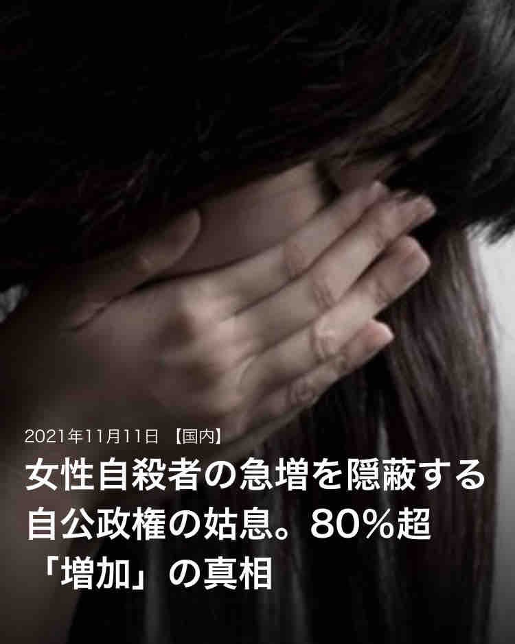 それも「働く女性の自殺者数の急増」です。それまで真面目に働いて来た女性たちの多くが、長引く新型コロナ禍によって生活に困窮し、自ら命を断たなければならない状況にまで追い詰めれたのです。厚労省も「新型コロナ感染拡大による失職や収入減が(女性の自殺者急増の)背景にある」と結論づけていますか、これは完全に政治の責任です。