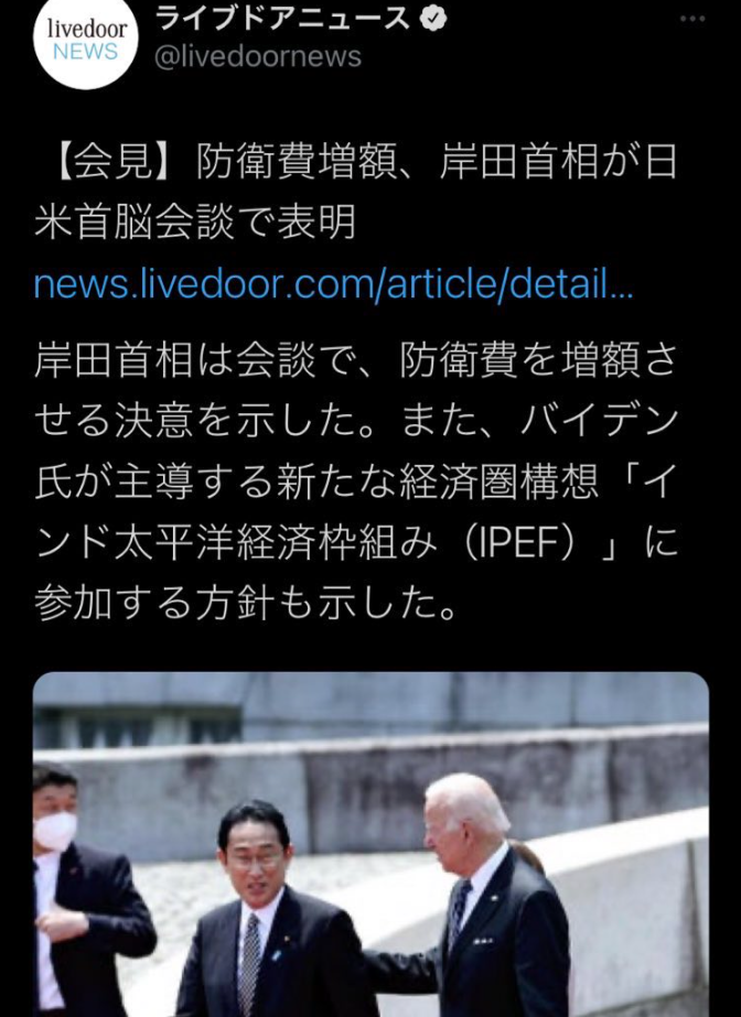 *IPEFとは、中国国内での経済が傾いた時にインド、オーストラリア、日本、アメリカで協力し合う協定。防衛費など関係ないはず。