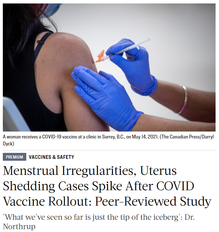 月経不順、COVIDワクチンの展開後の子宮排出症例の急増:ピアレビュー研究 「これまでに見たのは氷山の一角に過ぎません」:ノースラップ博士