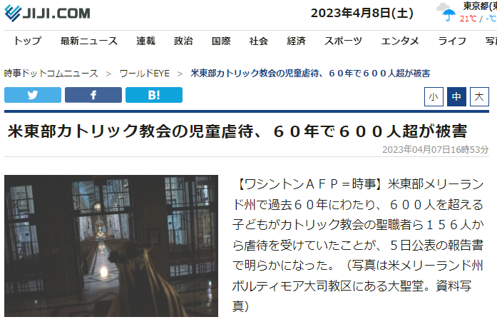 報告書は、同州司法長官事務所が1940年代~2002年のボルティモア大司教区での虐待をまとめたもの。