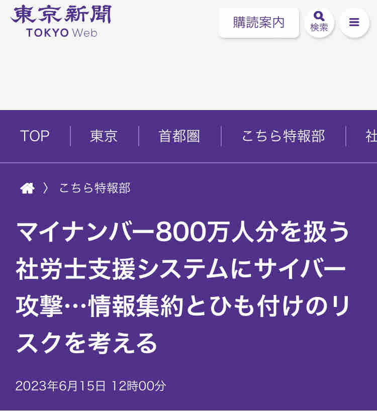 気になるのが、社労夢が扱う個人情報には、社労士の顧客企業の従業員や扶養家族の氏名や生年月日、給与などに加えて、12桁のマイナンバーもある点だ。