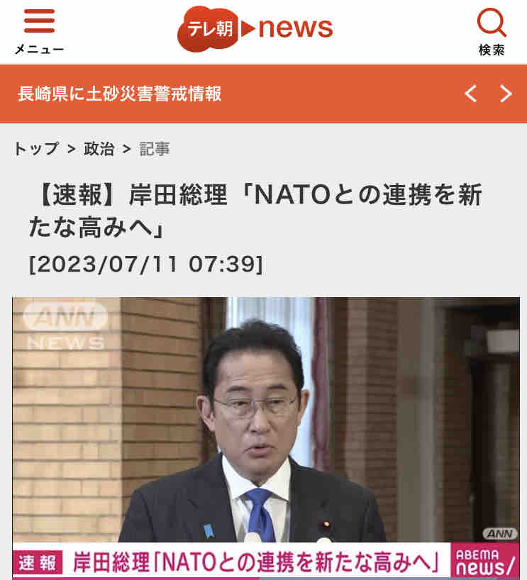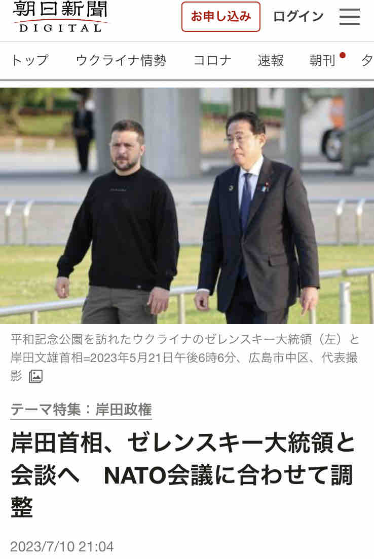 日本終了のお知らせ July 11, 2023 13:12 2023年7月11日 岸田文雄首相がリトアニアで11~12日に開かれる北大西洋条約機構(NATO)首脳会議に合わせ、ウクライナのゼレンスキー大統領と対面で会談する方向で調整していることが分かった。首相はロシアによる侵攻が続くウクライナへの支援を継続する方針を伝える見通し。複数の政府関係者が明らかにした。 カテゴリなしの他の記事 < 前の記事次の記事 >