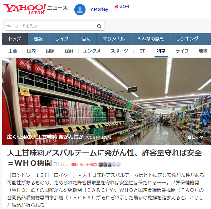 一方JECFAは、アスパルテームが有害だと確信できる証拠はないとした上で、体重1キロ当たり1日40ミリグラム未満という許容摂取量を引き続き推奨した。JECFAは1981年にこの水準を設定し、世界各国の規制当局も同様の指針を打ち出している。