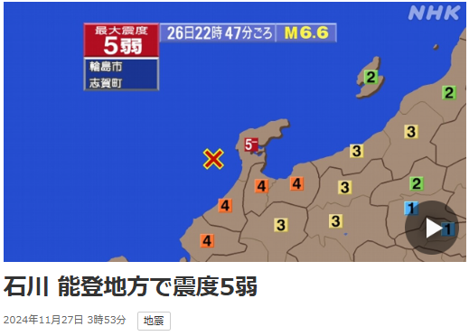 能登半島地震 2024.11.26. November 27, 2024 10:50 2024.11.26. →182024.11.26.22.47(46?).M6.6波形図待ち・・・・ カテゴリなしの他の記事 < 前の記事次の記事 >