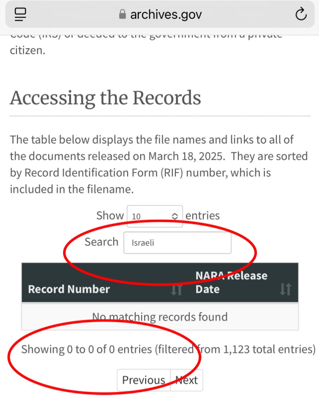 新しい JFK ファイルの検索機能が操作され、「ISRAEL」および「ISRAELI」の検索が除外されました。