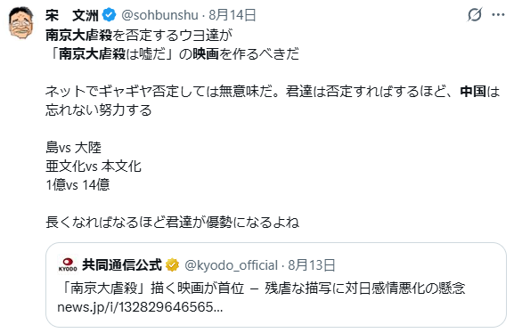 戦時中、中国では国民党や共産党批判の民衆のデモまで起きてたんですが綺麗に中国では忘れ去られてます
