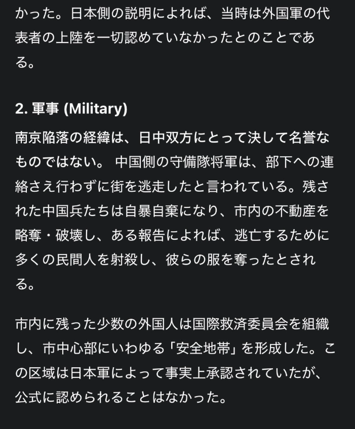 元中国人将校たちは、アメリカ人や他の外国人の前で、南京での略奪行為を自白し、またある夜、難民キャンプの少女たちを暗闇の中に引きずり出し、翌日、その攻撃は日本兵の仕業だと主張した。