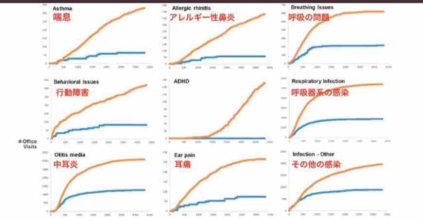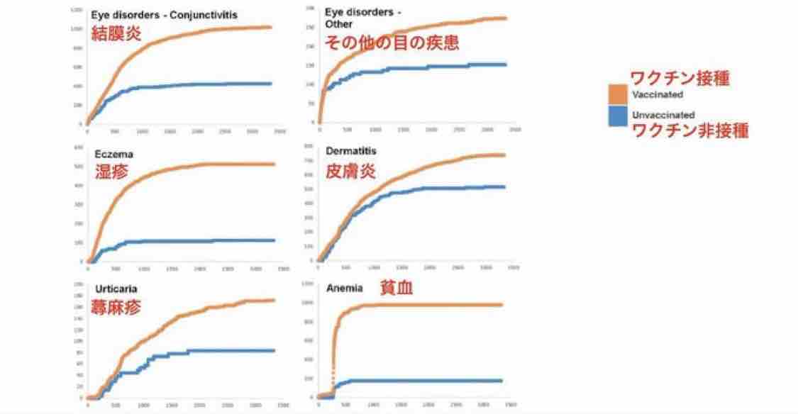 グラフのオレンジ線はワクチン接種児、青線はワクチン非接種児