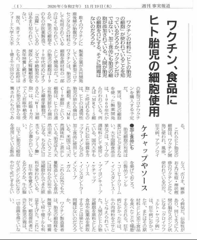 ワクチン・食品・化粧品に胎児の細胞。つまり、そういうことです。