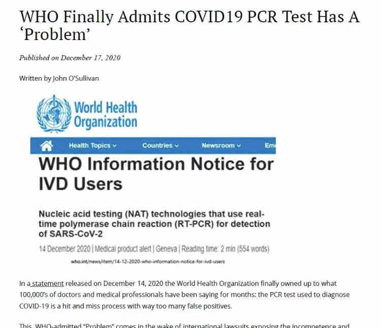 「PCR検査の精度が3%であり、インチキである事を国際訴訟され裁判で実証されたため、WHOはPCR検査に問題がある事を認めました。」